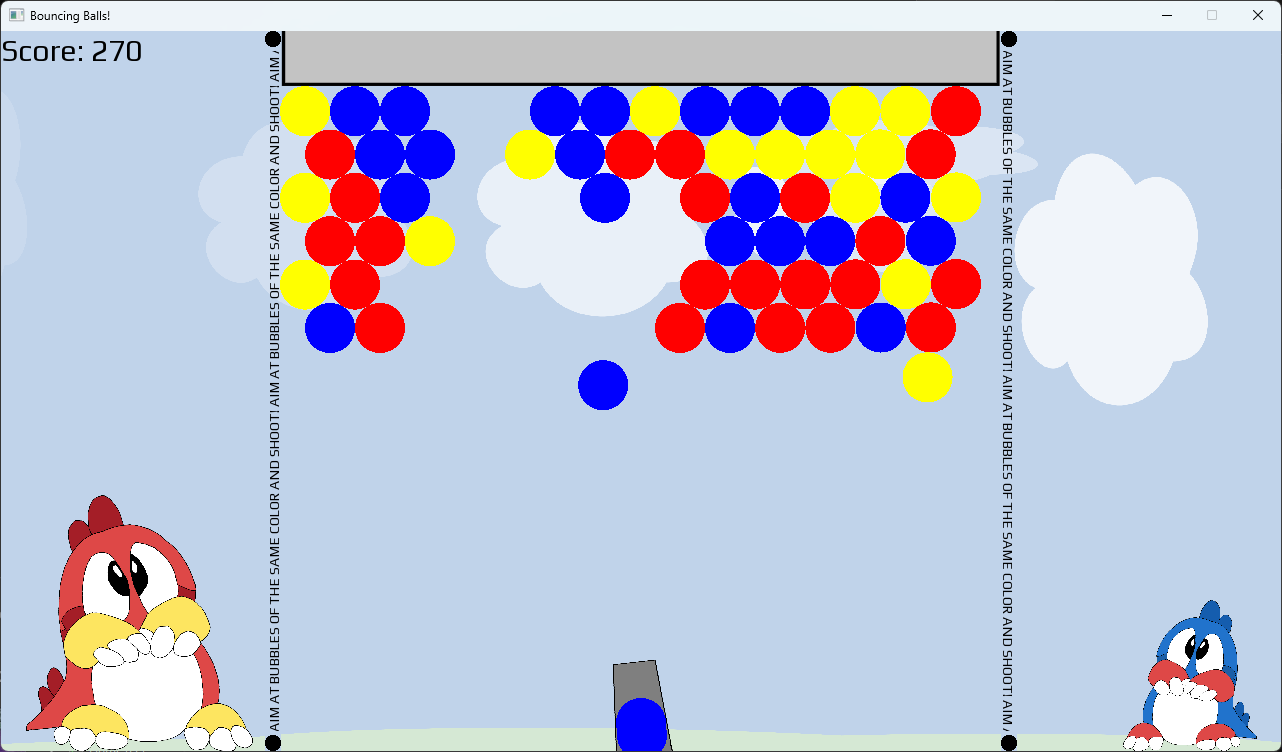 Welcome to Bouncing Balls, a recreation of the 1994 game Puzzle Bobble!
